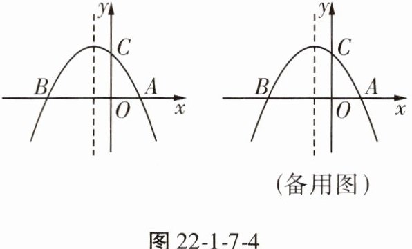 10. 如图 22 - 1 - 7 - 4,已知二次函数 $ y = ax^{2} + bx + c $ 的图象的对称轴为直线 $ x = -1 $,图象经过 $ B(-3,0) $,$ C(0,3) $ 两点,且与 $ x $ 轴交于点 $ A $。