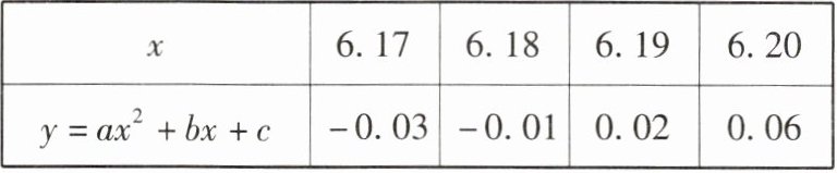 解题关键 由表格可得,当 $ x = 6.18 $ 时,$ y = -0.01 < 0 $;当 $ x = 6.19 $ 时,$ y = 0.02 > 0 $。