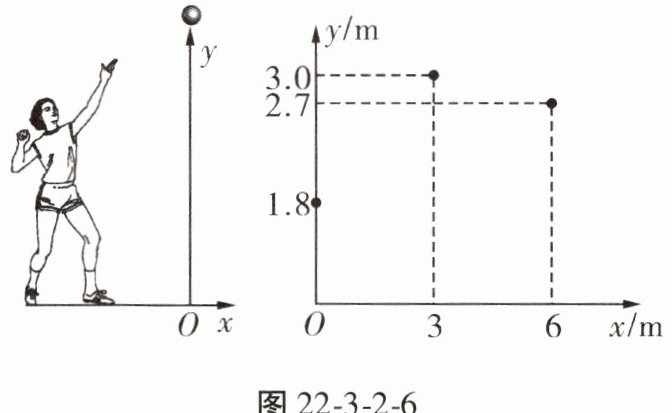 4. 运动员推出铅球后铅球在空中的飞行路线可以看作是抛物线的一部分,铅球在空中飞行的竖直高度$y(m)与水平距离x(m)近似地满足函数关系y = ax^2 + bx + c(a \neq 0)$。图22-3-2-6记录了铅球飞行中的x与y的三组数据,据此可推断出铅球飞行到最高点时,水平距离最接近(