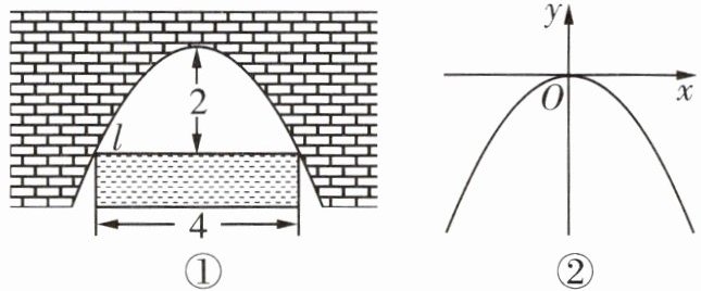1. 图22-3-2-3①是一个横断面为抛物线形状的拱桥,当水面在l处时,拱顶(拱桥洞的最高点)离水面2m,水面宽4m。如图22-3-2-3②建立平面直角坐标系,则抛物线的解析式是(