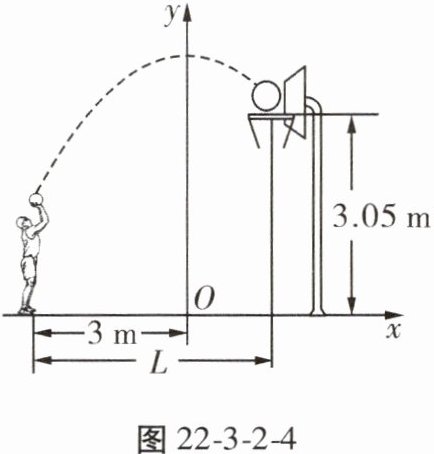 2. 小明在某次投篮中,球的运动路线是抛物线$y = -\frac{1}{5}x^2 + 3.5$的一部分,如图22-3-2-4,若命中篮圈中心,则他与篮底的距离L是(