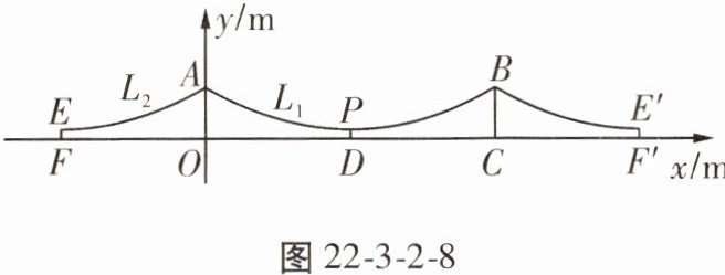 (2)点E在缆索$L_2$上,$EF \perp FF'$,且$EF = 2.6$m,$FO \lt OD$,求FO的长。
