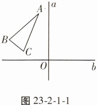 【例1】如图23 - 2 - 1 - 1,已知 $ \triangle ABC $,直线 $ a $,$ b $ 互相垂直,垂足为点 $ O $。$ \triangle A_1B_1C_1 $ 与 $ \triangle ABC $ 关于直线 $ a $ 成轴对称,$ \triangle A_2B_2C_2 $ 与 $ \triangle A_1B_1C_1 $ 关于直线 $ b $ 成轴对称。那么下列说法正确的是(