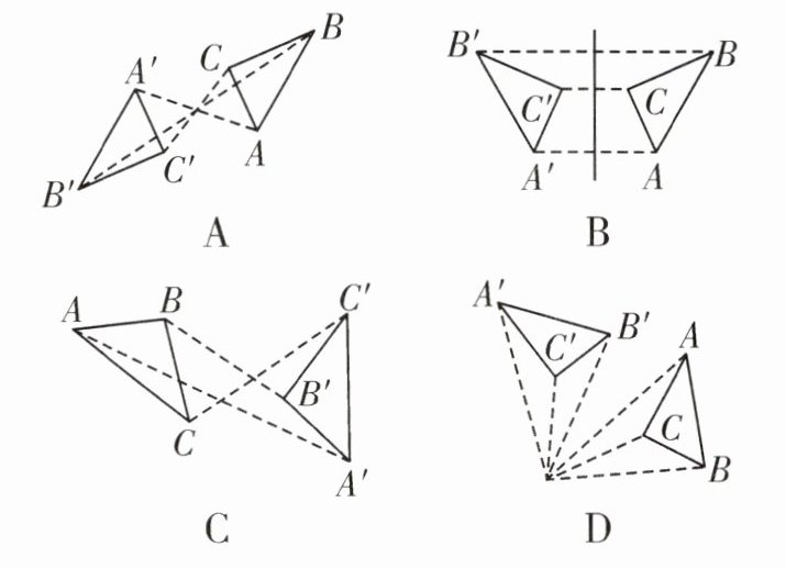 1. 下列图形中,$ \triangle A'B'C' $ 与 $ \triangle ABC $ 成中心对称的是(