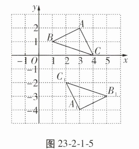 3. 如图23 - 2 - 1 - 5,在平面直角坐标系中,若 $ \triangle ABC $ 与 $ \triangle A_1B_1C_1 $ 关于点 $ E $ 成中心对称,则对称中心 $ E $ 的坐标是