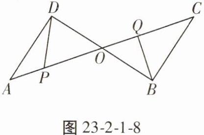 6. 如图23 - 2 - 1 - 8,$ \triangle AOD $ 和 $ \triangle COB $ 关于点 $ O $ 成中心对称,$ \angle AOD = 60^{\circ} $,$ \angle ADO = 90^{\circ} $,$ BD = 12 $,点 $ P $ 是 $ AO $ 上一动点,点 $ Q $ 是 $ OC $ 上一动点($ P $,$ Q $ 不与端点重合),且 $ AP = OQ $,连接 $ BQ $,$ DP $,则 $ DP + BQ $ 的最小值是