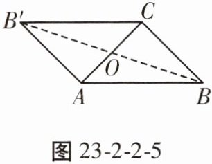 6. 如图 23 - 2 - 2 - 5,在等腰直角三角形 $ABC$ 中,$\angle ACB = 90^{\circ}$,$BC = 2\mathrm{cm}$,如果以 $AC$ 的中点 $O$ 为旋转中心,将这个三角形旋转 $180^{\circ}$,点 $B$ 落在点 $B'$ 处,求 $BB'$ 的长度。