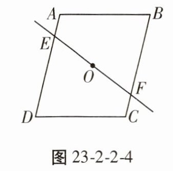 5. 如图 23 - 2 - 2 - 4,直线 $EF$ 经过 $□ ABCD$ 的对角线的交点 $O$,若 $AE = 3\mathrm{cm}$,四边形 $AEFB$ 的面积为 $15\mathrm{cm}^{2}$,则 $CF = $