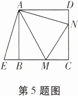 5. 如图,点M,N分别在正方形ABCD的边BC,CD上,且$\angle MAN= 45^{\circ}$。把$\triangle ADN$绕点A顺时针旋转$90^{\circ}得到\triangle ABE$。
