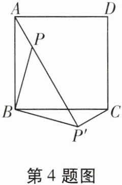 4. 如图,四边形ABCD是正方形,P是正方形内任意一点,连接PA,PB,将$\triangle PAB$绕点B顺时针旋转至$\triangle P'CB$处,连接$PP'$。