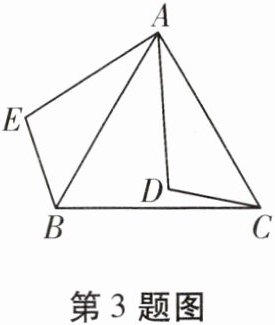 3. 如图,D是等边三角形ABC内一点,将线段AD绕点A顺时针旋转$60^{\circ}$,得到线段AE,连接CD,BE。