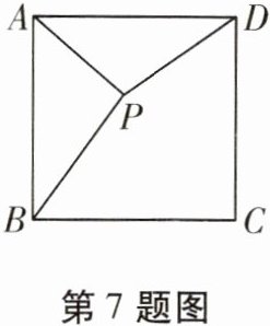 7. 如图,正方形的边长为4,点P为正方形内任意一点,连接PA,PB,PD,则$PA+PB+PD$的最小值为
