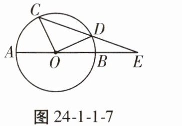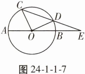 7. 如图24 - 1 - 1 - 7,$ AB $ 是 $ \odot O $ 的直径,$ CD $ 是 $ \odot O $ 的弦,$ AB $,$ CD $ 的延长线交于点 $ E $,已知 $ AB = 2DE $,若 $ \triangle COD $ 为直角三角形,则 $ \angle E $ 的度数为______。