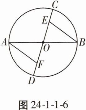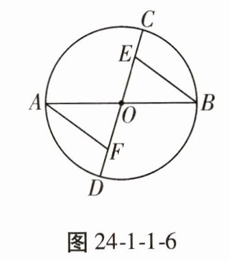 6. 如图24 - 1 - 1 - 6,$ AB $,$ CD $ 为 $ \odot O $ 的两条直径,点 $ E $,$ F $ 在直径 $ CD $ 上,且 $ CE = DF $。求证:$ AF = BE $。