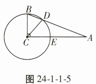 5. 如图24 - 1 - 1 - 5,在 $ Rt \triangle ABC $ 中,$ \angle ACB = 90^{\circ} $,以点 $ C $ 为圆心,$ BC $ 为半径的圆交 $ AB $ 于点 $ D $,交 $ AC $ 于点 $ E $,$ \angle BCD = 40^{\circ} $,则 $ \angle A = $______。