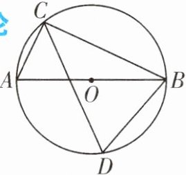 解题关键 利用直径所对的圆周角等于$90^{\circ}$,求得$\angle A$的度数,然后根据同弧所对的圆周角相等求解。