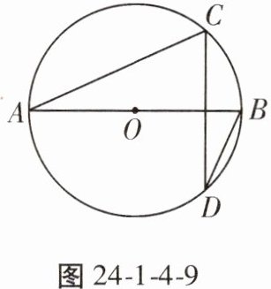 5. (2025陕西中考)如图24-1-4-9,$AB为\odot O$的直径,$\overset{\frown}{BC} = \overset{\frown}{BD}$,$\angle CDB = 24^{\circ}$,则$\angle ACD$的度数为