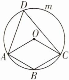 【例4】如图24-1-4-4,在$\odot O$中,四边形$OABC$为菱形,点$D在\overset{\frown}{AmC}$上,则$\angle ADC$的度数是