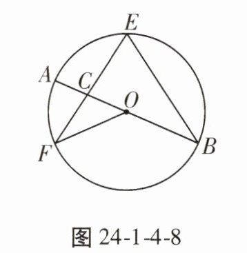 4. 如图24-1-4-8,$AB是\odot O$的直径,$EF$,$EB是\odot O$的弦,且$EF = EB$,$EF与AB交于点C$,连接$OF$,若$\angle AOF = 40^{\circ}$,则$\angle F$的度数是(