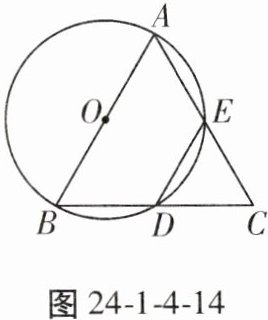 10. 如图24-1-4-14,在$\triangle ABC$中,$AB = BC = 2$,以$AB为直径的\odot O分别交BC$,$AC于点D$,$E$,且点$D为边BC$的中点。