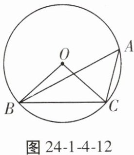 8. (2024陕西中考)如图24-1-4-12,$BC是\odot O$的弦,连接$OB$,$OC$,$\angle A是\overset{\frown}{BC}$所对的圆周角,则$\angle A与\angle OBC$的和的度数是
