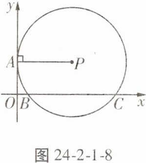 10. (直观想象) 如图24-2-1-8,在平面直角坐标系中,点$P的坐标为(5,3)$,过点$P作PA\perp y$轴,垂足为$A$,以点$P$为圆心,$PA$的长为半径作圆,$\odot P与x轴交于B$,$C$两点 ($B点在C$点左侧)。