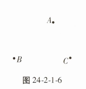 6. 如图24-2-1-6,$A$,$B$,$C$三点表示三个工厂,要建立一个供水站,使它到这三个工厂的距离相等,求作供水站$P$的位置。(要求尺规作图,写作法)