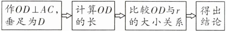 $\boxed{作OD\perp AC,垂足为D}\rightarrow\boxed{计算OD的长}\rightarrow\boxed{比较OD与r的大小关系}\rightarrow\boxed{得出结论}$