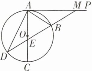 解题关键 根据切线的性质得出∠EAM= 90°,利用等腰三角形的性质与余角的性质解决问题。