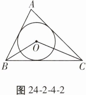 【例2】如图24-2-4-2,点O是△ABC内切圆的圆心,∠BAC= 80°,求∠BOC的度数。