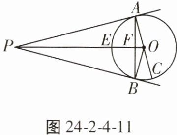 10. 如图24-2-4-11,P为⊙O外一点,PA,PB为⊙O的切线,A,B为切点,AC为⊙O的直径,PO交⊙O于点E。