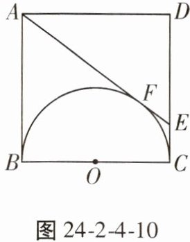 9. 如图24-2-4-10,正方形ABCD的边长为4cm,以正方形的一边BC为直径在正方形ABCD内作半圆,再过点A作半圆的切线,与半圆切于点F,与CD交于点E,求△ADE的面积。