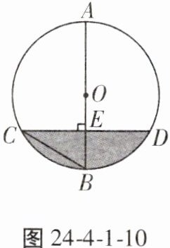 8. 如图24-4-1-10,已知 $ AB $ 为 $ \odot O $ 的直径,$ CD $ 是弦,$ AB \perp CD $,垂足为点 $ E $,若 $ EB = 5 \, cm $,$ CD = 10\sqrt{3} \, cm $,设 $ OE = x \, cm $,求 $ x $ 的值及图中阴影部分的面积。