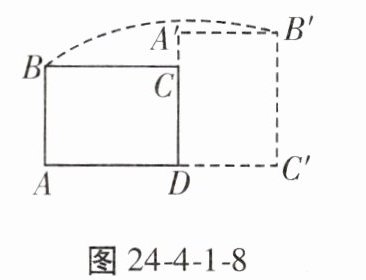 6. 如图24-4-1-8,在矩形 $ ABCD $ 中,$ AB = 3 $,$ AD = 4 $,将矩形 $ ABCD $ 绕点 $ D $ 顺时针旋转 $ 90^{\circ} $ 得到矩形 $ A'B'C'D $,则点 $ B $ 经过的路径与 $ BA $,$ AC' $,$ C'B' $ 所围成的封闭图形的面积是
