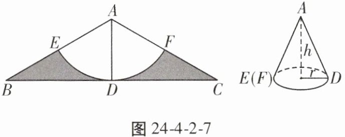 (2)将阴影部分剪掉,余下扇形$AEF$,将扇形$AEF$围成一个圆锥的侧面,$AE与AF$正好重合,圆锥侧面无重叠,求这个圆锥的高$h$。