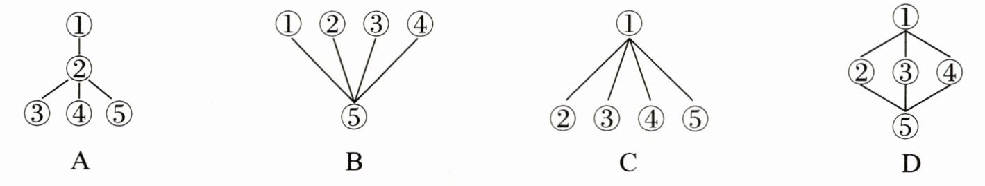 ) 4. Which best shows the structure of the passage? (① = Para. 1)(