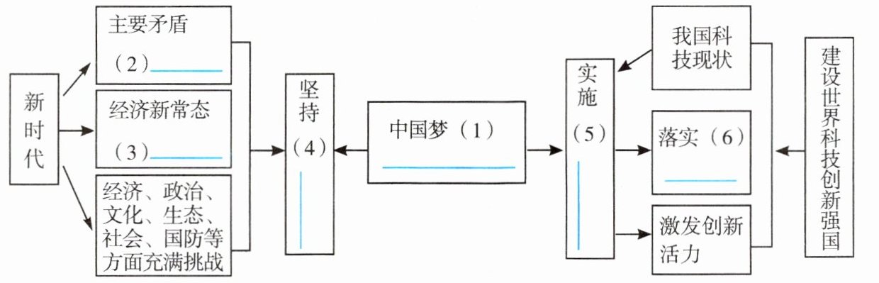 ①改革开放 ②创新驱动发展战略 ③中华民族伟大复兴 ④科教兴国战略、人才强国战略 ⑤由高速增长阶段转向高质量发展阶段 ⑥人民日益增长的美好生活需要和不平衡不充分的发展之间的矛盾
