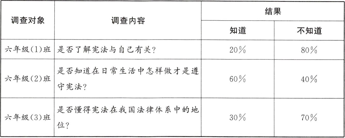 2.(1)同学们对宪法的内容、地位、作用了解得还不够,法律意识有待增强。