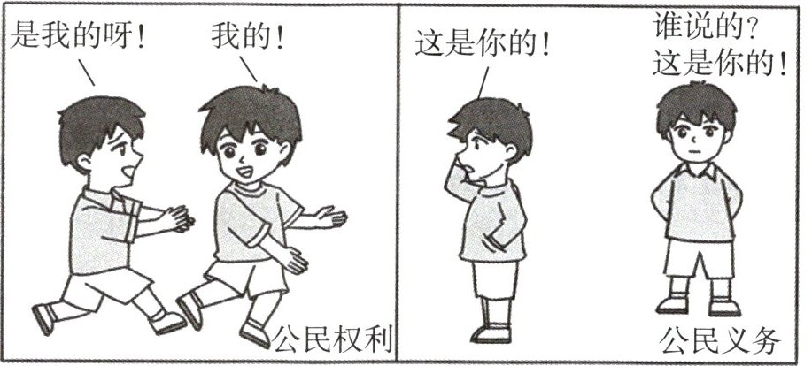漫画中的人物没有认识到我们在享受权利的同时要依法履行义务。