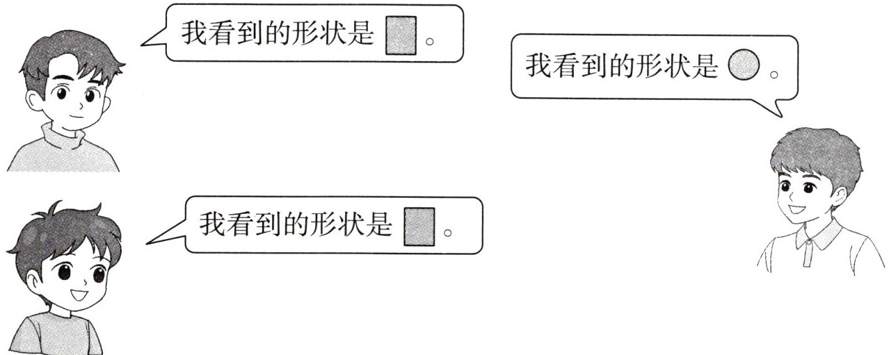 五、下面是三位同学从不同角度看同一个立体图形的结果,这个立体图形是我们学过的,你知道他们看到的这个立体图形是什么吗?