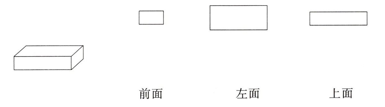 小刚观察一块长方体积木,下面的图形分别是他从前面、左面和上面看到的,请连一连。