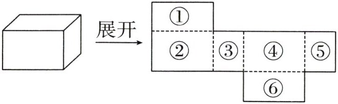 一、下图是一个长方体及其展开图,找出展开图中相对的两个面,并说一说它们是长方体的哪个面。