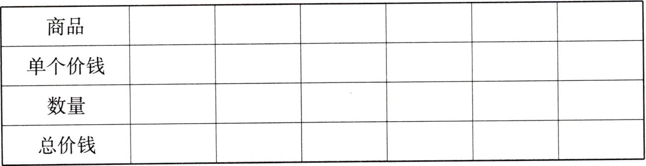 下面就请你完成一次消费。比如你和父母去超市购物,预算200元。购物后请将消费明细记录到下面的表格中,请你估一估,算一算,是否超过了预算。
