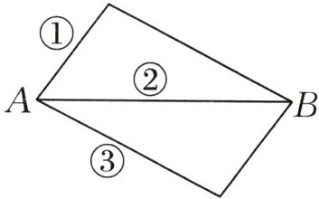 3. 如图所示,从点 $ A $ 到点 $ B $ 有三条连线,那么距离最短的是第(