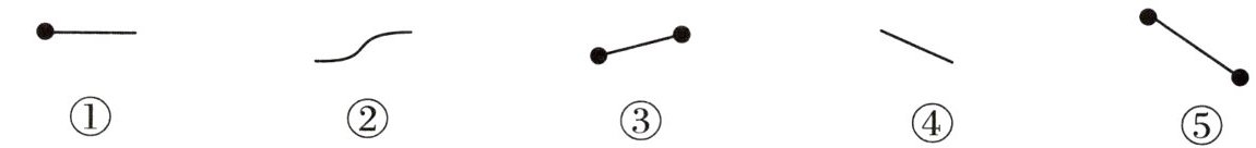 三、下图中,哪些是直线?哪些是线段?哪些是射线?(填序号。)