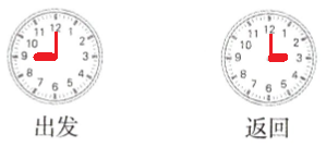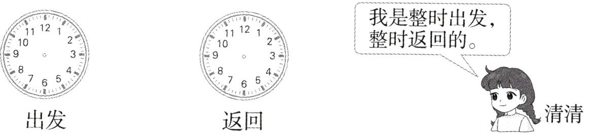 五、清清去图书馆看书。上午时针和分针成直角时出发,下午时针和分针成直角时返回。你知道清清是什么时间出发,什么时间返回的吗?请在表盘上画一画。