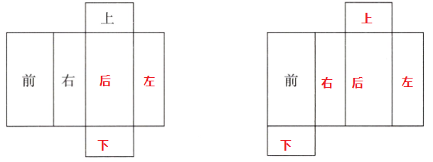 左图空白处依次填:后、左、下;右图空白处依次填:上、右、后、左、下。