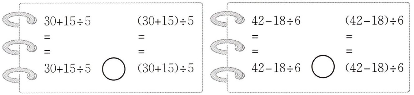 2. 算式$(8 + 4) ÷ 2和8 + 4 ÷ 2$相比较,(