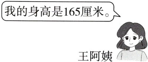 3 分米=30 厘米165+30=195(厘米)2 米=200 厘米200-195=5(厘米)王阿姨站在这个凳子上高度为 195 厘米,因为手臂的长度大于 5 厘米,所以王阿姨能整理到书架上的图书。她准备的这个凳子合适。