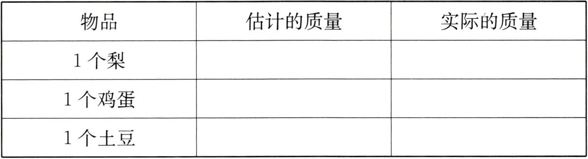 三、找一找身边的物品,先估一估质量,再称出它们的实际质量。